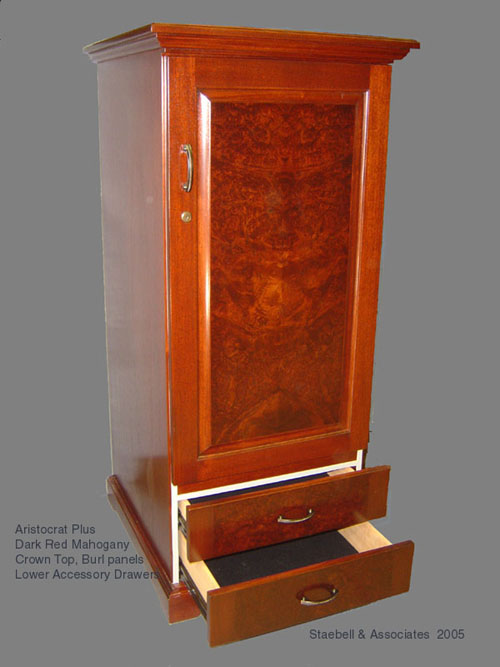 The added benefit is one never need to get on the floor to get to the box on the bottom in the back ever again. Std. Cabinet Dimensions: 22" wide x 25" deep x 51" High Shown Above: